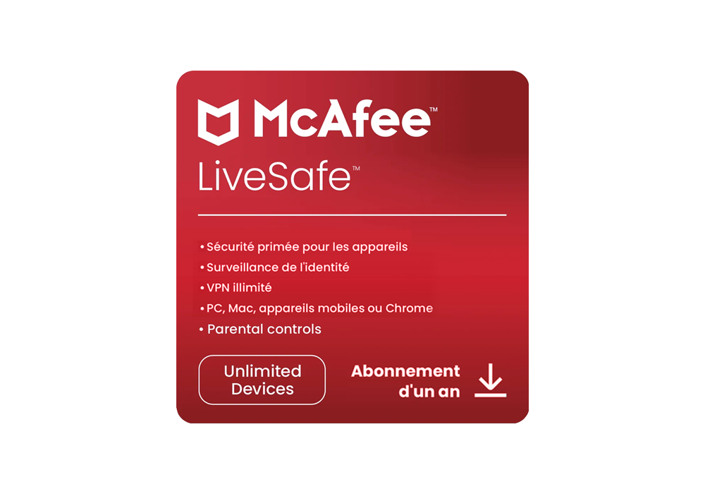 McAfee Livesafe & VPN 2026 | Appareils illimités | 1 an | PC/Mac/Android | En Téléchargements