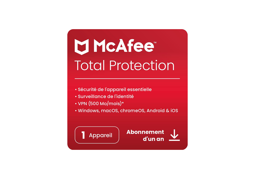 McAfee Total Protection 2026 | 1 appareil | 1 an | PC/Mac/iOS/Android | Téléchargement