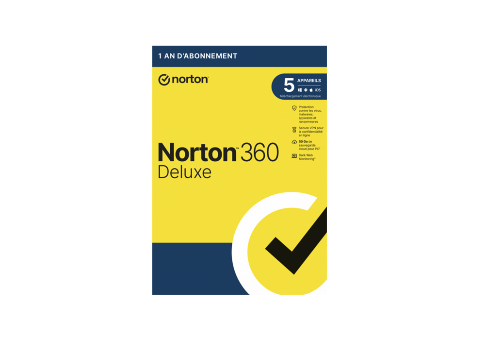 Norton 360 Deluxe 2026 | 5 appareils | 1 an | VPN Inclus | 50Go Cloud | PC/Mac/Android/iOS | Téléchargements