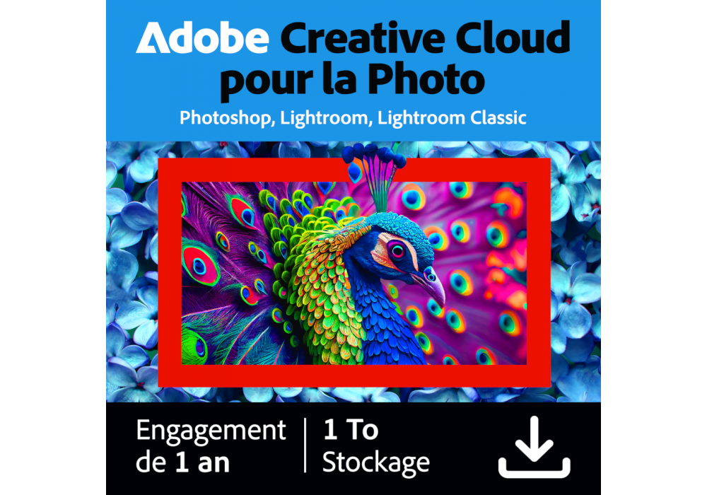Libérez votre créativité avec Adobe Creative Cloud Photographie + 100 Go de cloud, l’offre incontournable pour les passionnés d’image ! Cette solution comprend Photoshop + Lightroom, deux logiciels de référence pour la retouche photo et la création graphique. Pendant un an, sur PC ou Mac.